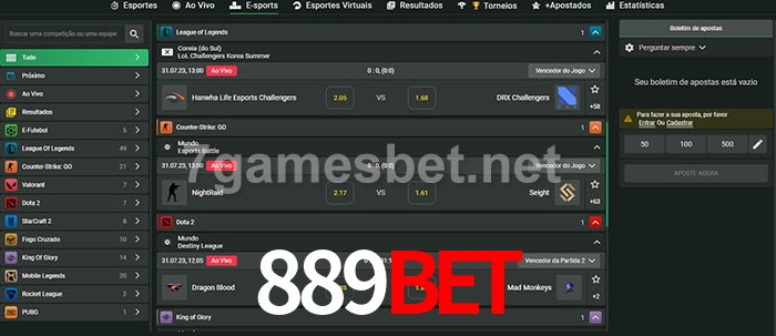 O 889bet oferece uma grande seleção de opções de apostas em e-sports com probabilidades competitivas